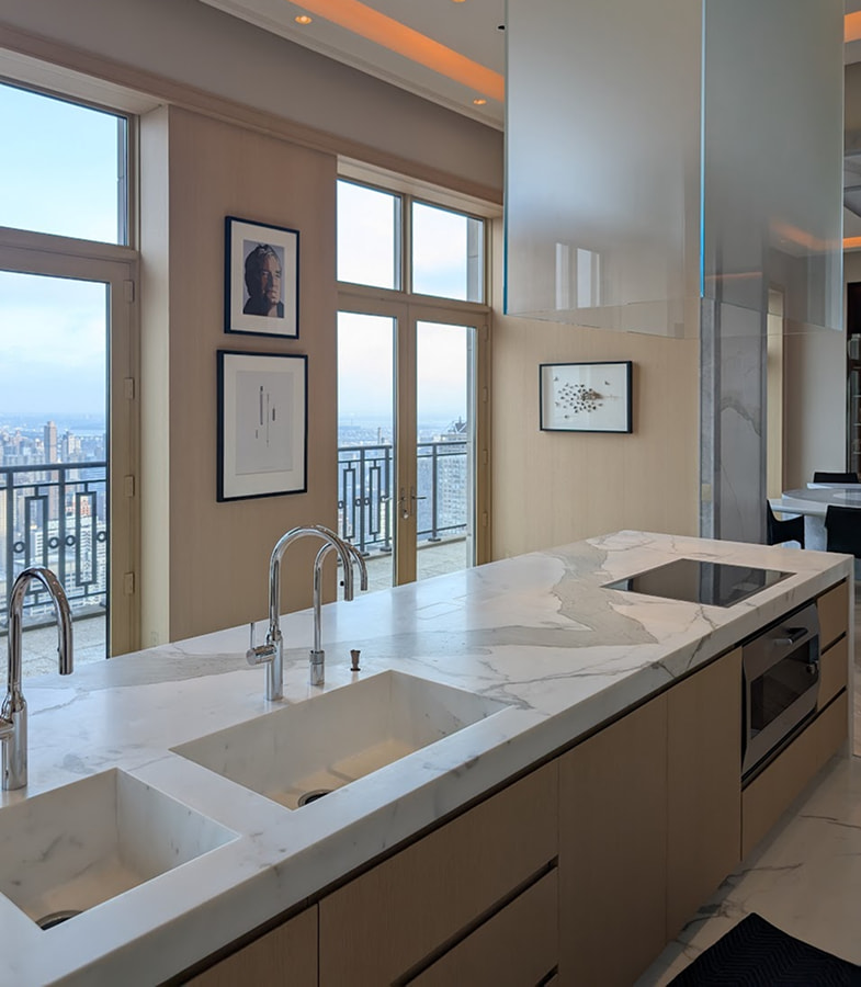 We work exclusively with premium materials, including solid wood, high-quality veneers, stainless steel, marble, and quartz.